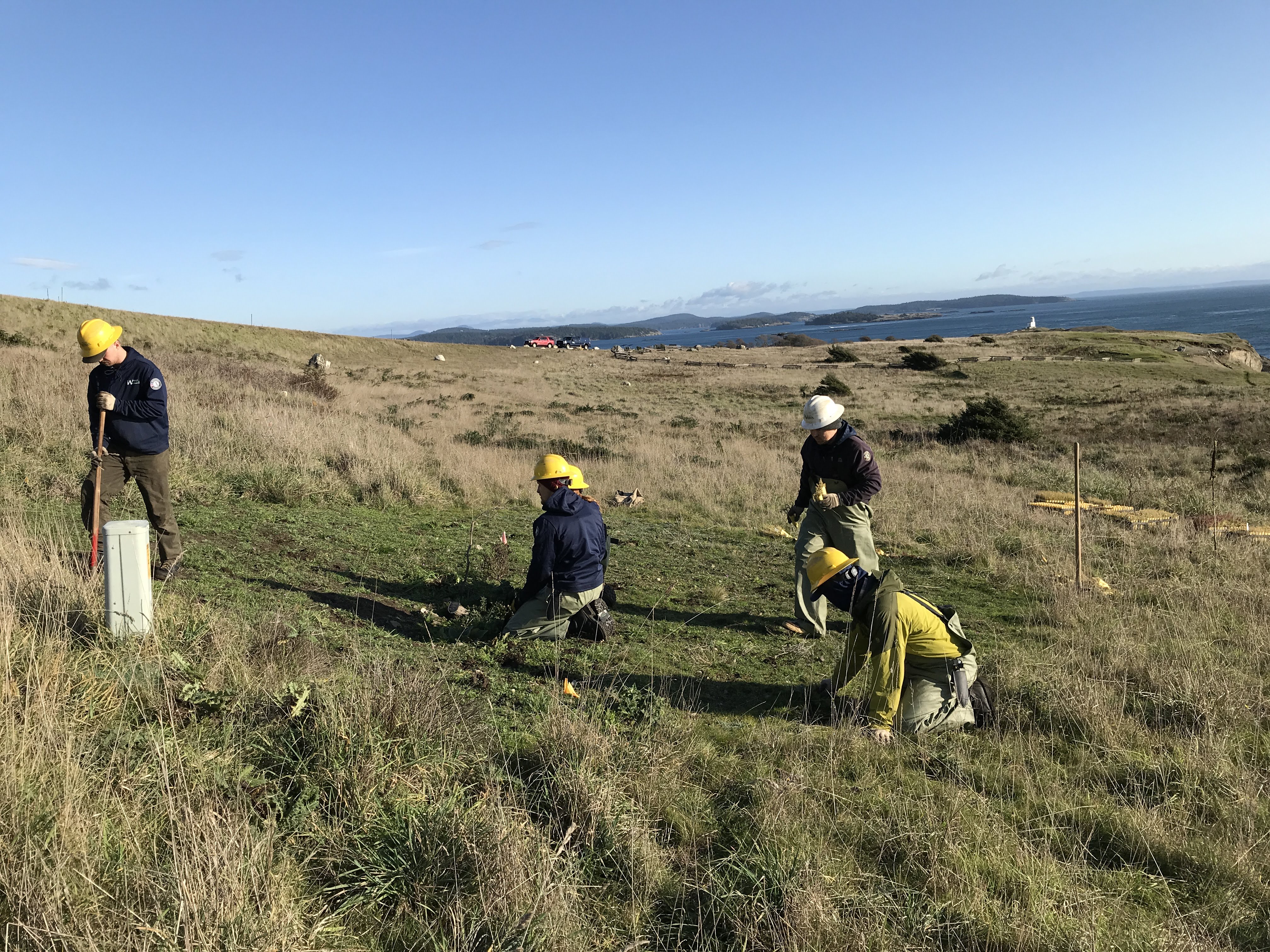 WCC crew planting patches of vegetation for pollinators at Cattle Point.