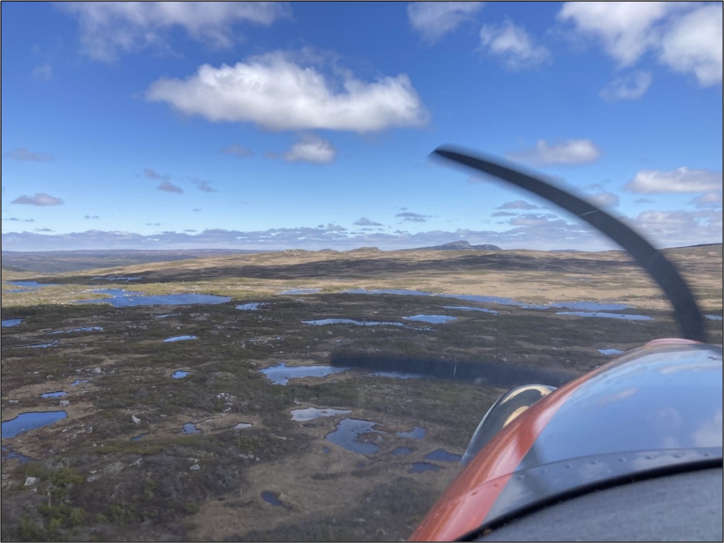 This image was taken during the 2025 Waterfowl Breeding Population and Habitat Survey. Wetlands in central Newfoundland were in good condition after above average precipitation in April which helped alleviate abnormally dry conditions earlier in the year. Ice-out and snow melt came early offering potential for good waterfowl production.