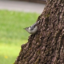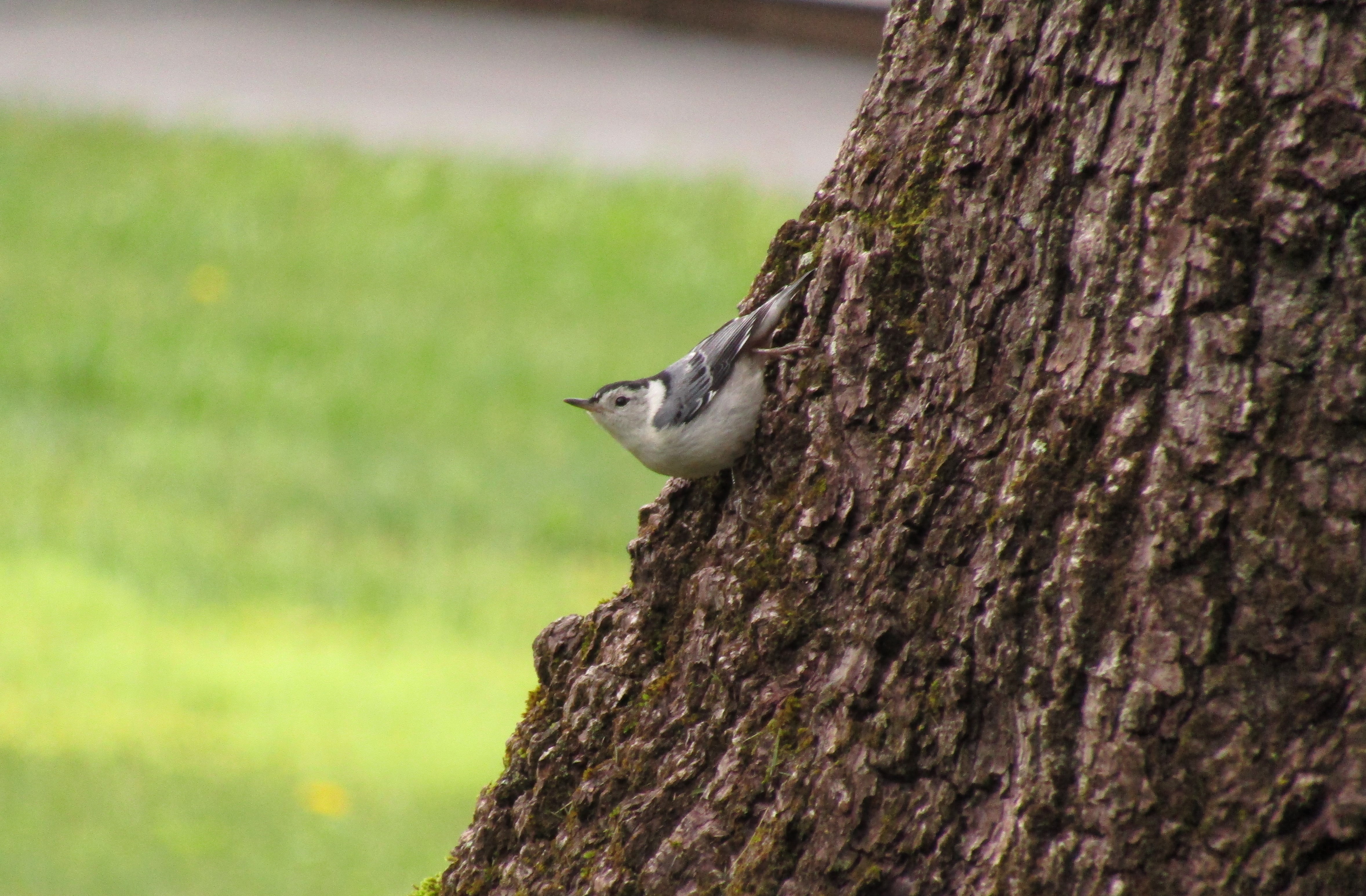 A White-breasted nuthatch perched at the base of a tree at Erwin NFH