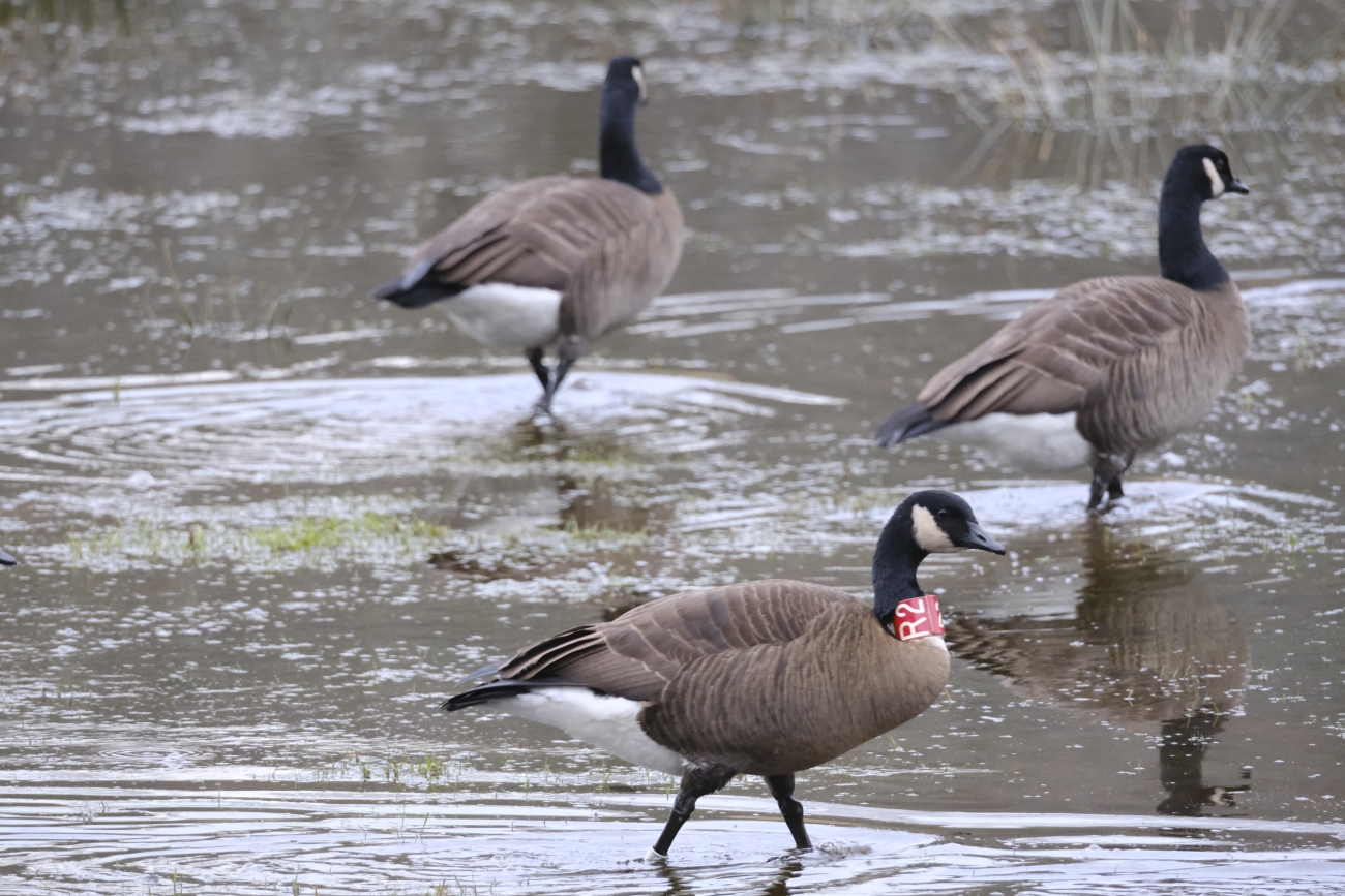 Biologists use collars and bands to identify and track birds over time, as in the case of this white cheeked goose at Nestucca Bay National Wildlife Refuge.