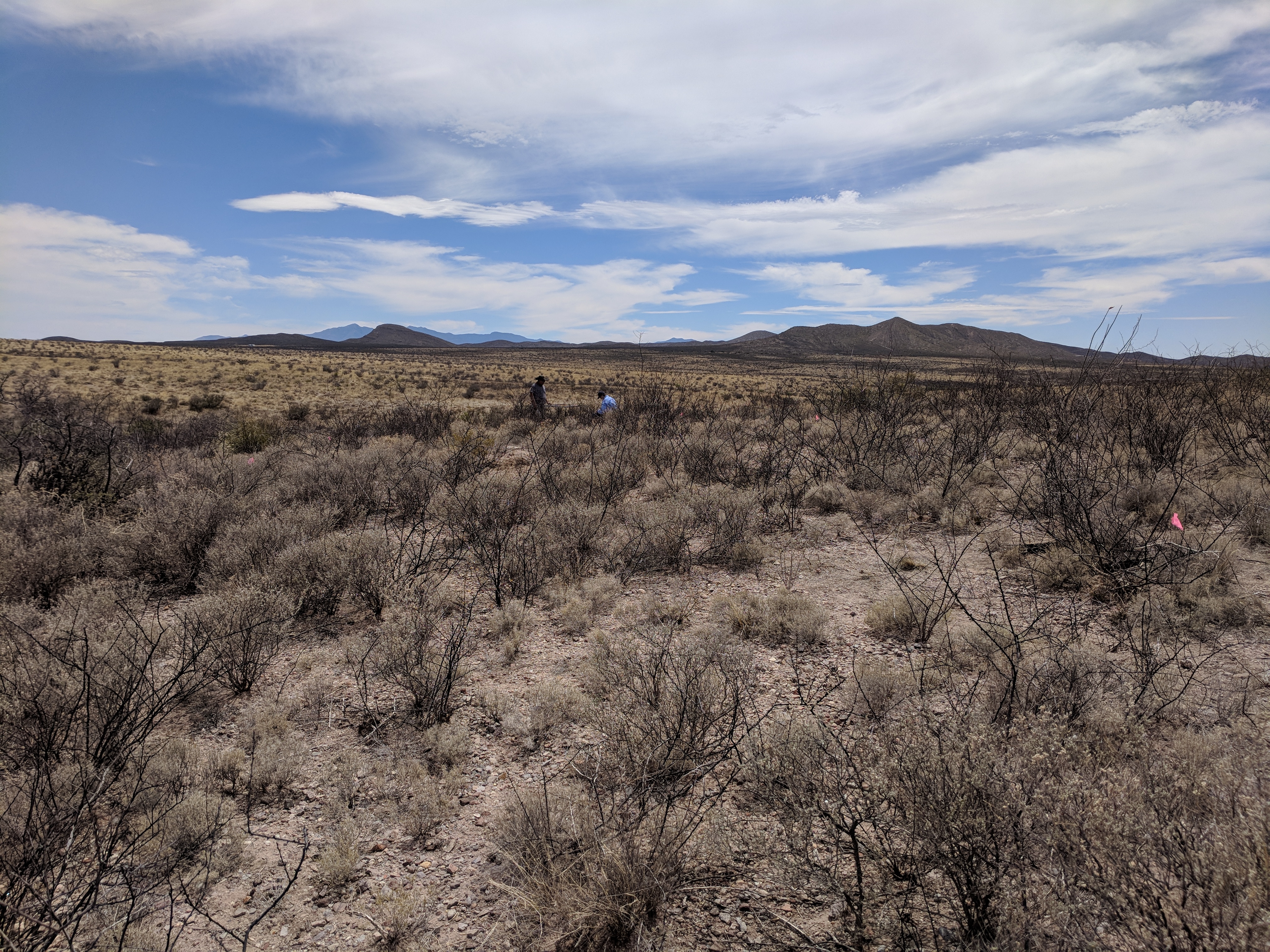 The untreated landscape at Walnut Gulch Experimental Watershed. Many of the shrubs are whitethorn acacia (Vachellia constricta).