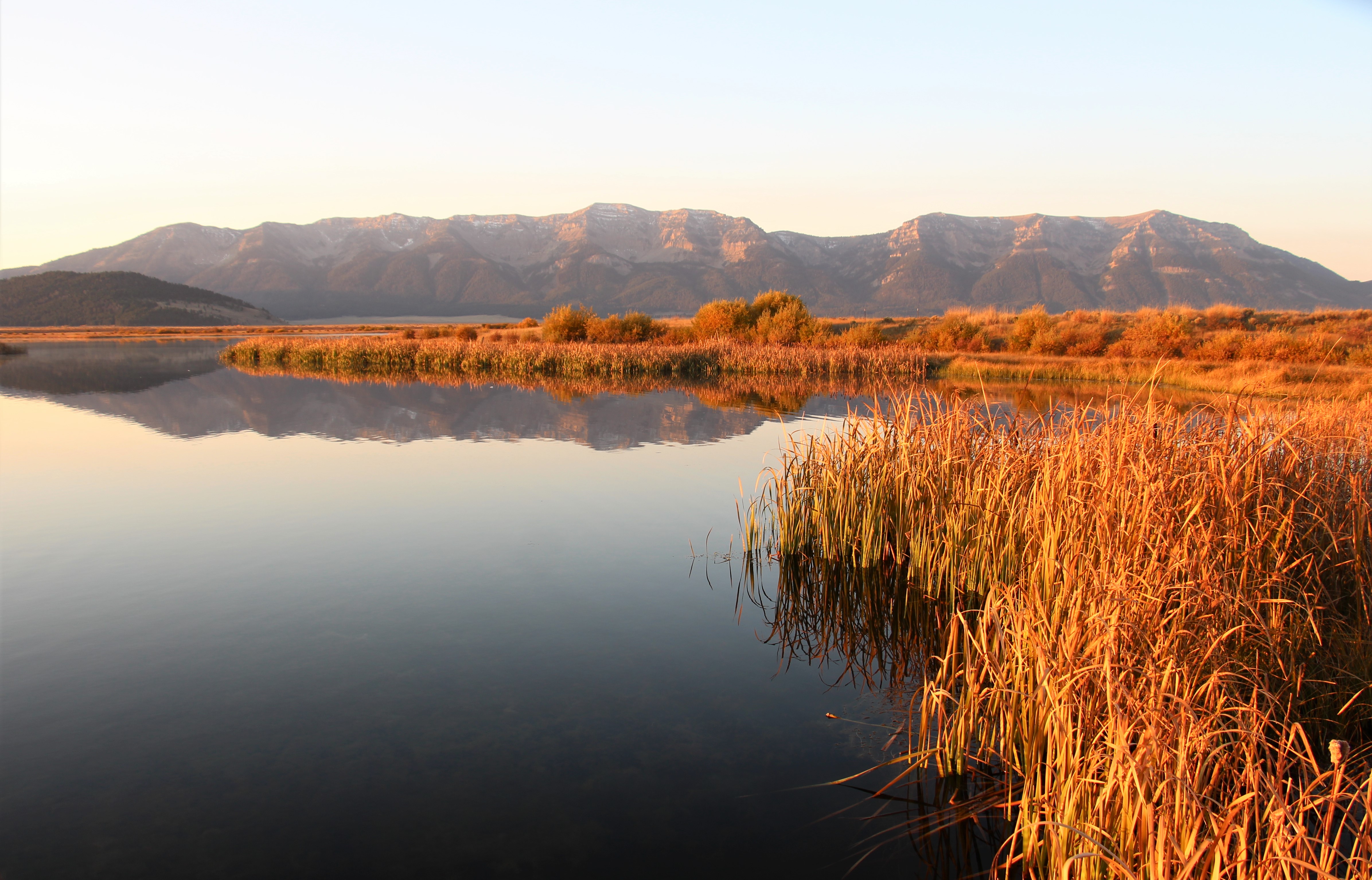 At Red Rock Lakes National Wildlife Refuge, an early sunrise over a calm reflective Widgeon Pond in September provide great views. The Centennial Mountains can be seen in the background and reflecting in the water. Photo by Cortez Rohr/USFWS.