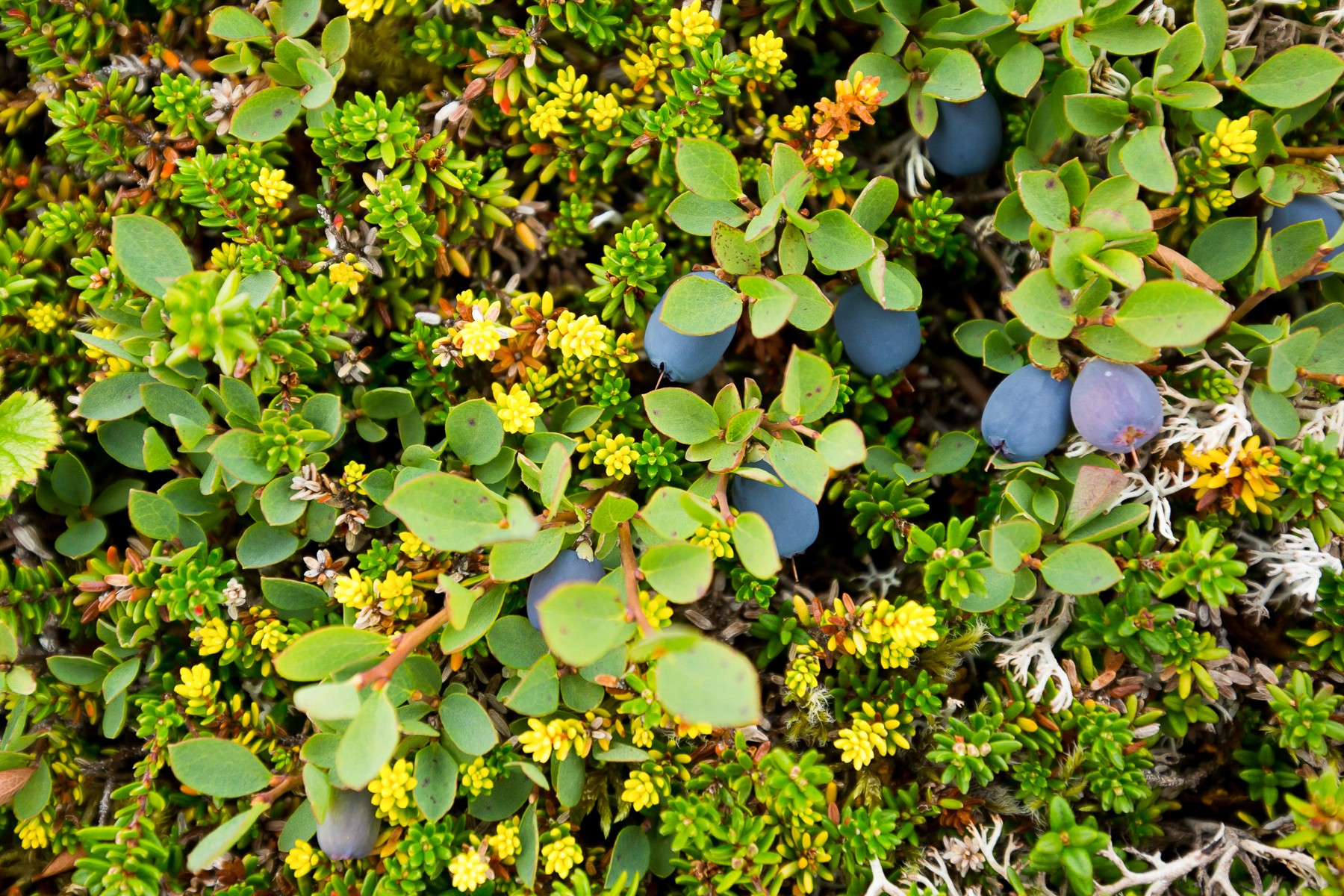 Alpine blueberry and crowberry plants at Kodiak National Wildlife Refuge in Alaska.