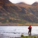 KT Tunstall, musician in residence at Kodiak National Wildlife Refuge in Alaska, fishes at Karluk Lake.