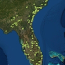 Yellow dots indicate the accumulation of wood stork colony locations from 2015 to 2019.
