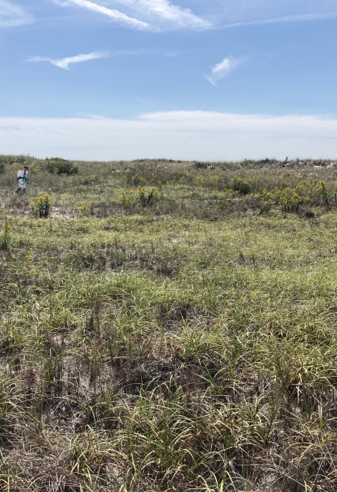 Learn more about invasive species monitoring is conducted are located at the Holgate Unit (the southern end of Long Beach Island), and the former Forked River Game Farm in Lacey Township. At Holgate, Asiatic Sand-Sedge (Carex kobomugi) is an aggressive and dense invasive which has the high potential of colonizing prime piping plover nesting areas, reducing the likelihood of piping plovers to nest at that location. At the Forked River Game Farm, the invasive Bradford Pear (Pyrus calleryana) tree is an aggressive invasive that outcompetes native trees and shrubs in grassland and early successional habitats. Without the monitoring and removal of theses invasive plants, habitats will become single-species invasive habitats, providing little resource value to native wildlife populations.