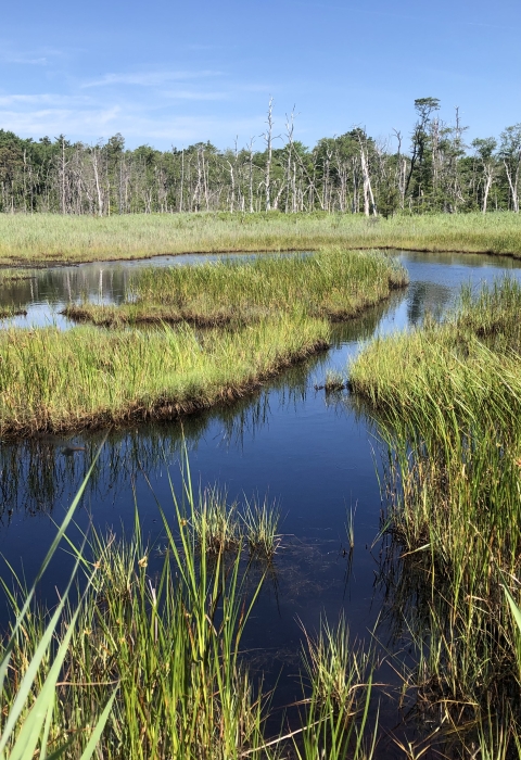 At Edwin B. Forsythe NWR, we manage one of our pools for low water from early spring until early fall, while the other pool is kept at a constant water level (between 0.90 – 1.10 ft.) throughout this same period. During winter, both pools will have their water levels managed at approximately one foot in depth. Then, in the following early spring, the pool that had the constant water level management the previous year will be managed for shallow water, and vice versa. By alternating the water levels yearly with each pool, the moist soils within each pool can reach their maximum productivity for producing aquatic vegetation and aquatic invertebrates for birds.