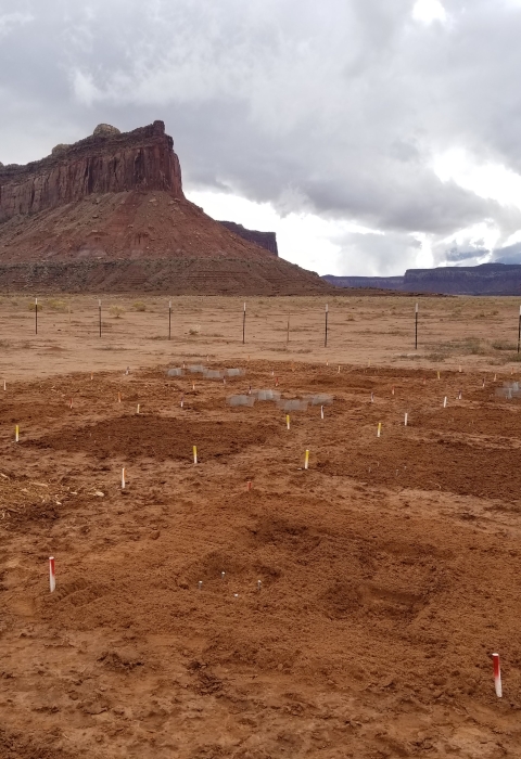 In water-limited ecosystems, treatments that increase soil water retention can increase germination and establishment of plants. How the preferred climate conditions of the seeded plant species (warm/dry or cool/wet season species) align with post-seeding weather at the restoration site can also influence success. From 2018 to present, USGS and university researchers collaborated with land managers to establish treatment plots across the southwestern US and implemented treatments in the season rainfall typically occurs. In the Colorado Plateau, this is typically between July and September. Each plot received one of five treatments: control, seeded only, or seeded plus wood mulch, pitting, or above-ground structure structure