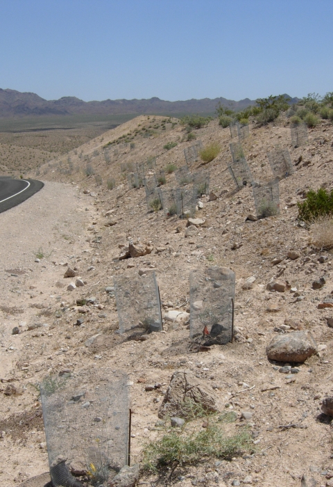 Maintaining the aesthetic of National Park lands is important for recreation. Disturbances, such as road maintenance, remove mature perennial shrubs and native vegetation that provide important ecosystem services. In 2008-2009, a maintenance project was implemented in the upper reach of Lake Mead National Recreation Area to widen and straighten Northshore Road. Collaborators are attempting to restore areas affected by maintenance activities in order to re-establish habitat that might not recover otherwise and to test methods that mitigate disturbance-related impacts.