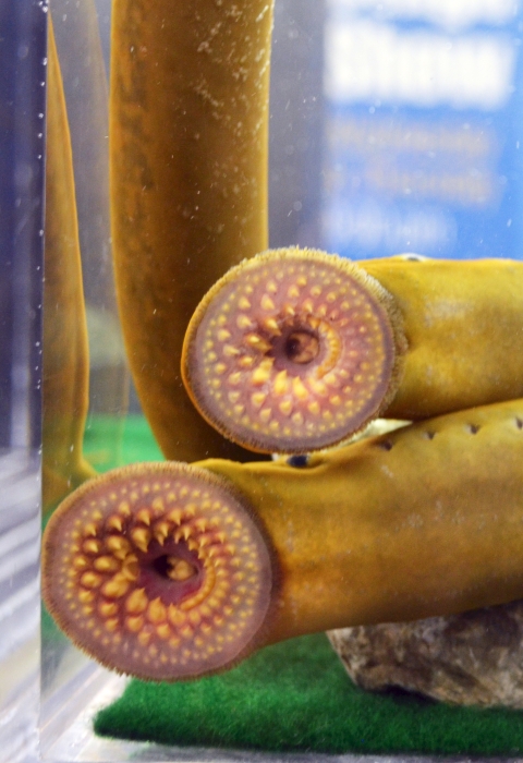 Sea lamprey are jawless, parasitic fish native to the Atlantic Ocean that are believed to have entered Lake Champlain through shipping canals. Their preferred prey of cold-water, soft-scaled fish resulted in the decimation of native lake trout and landlocked Atlantic salmon, native fish populations of Lake Champlain already vulnerable from historic overfishing and habitat destruction. Since 1990, the Service has partnered with Vermont and New York to protect Lake Champlain by controlling this invasive species invasive species