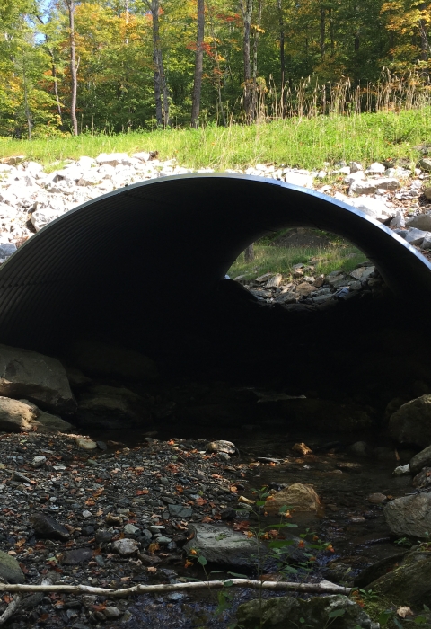 Stream Smart road crossings are designed to let the stream flow naturally beneath them. This keeps the stream habitat healthier and allows fish and other aquatic organisms to pass through. These crossings also tend to last longer, reduce maintenance costs, and improve public safety. The goal of Stream Smart road crossings is to connect fish and wildlife habitat while protecting roads to improve infrastructure resiliency and public safety.