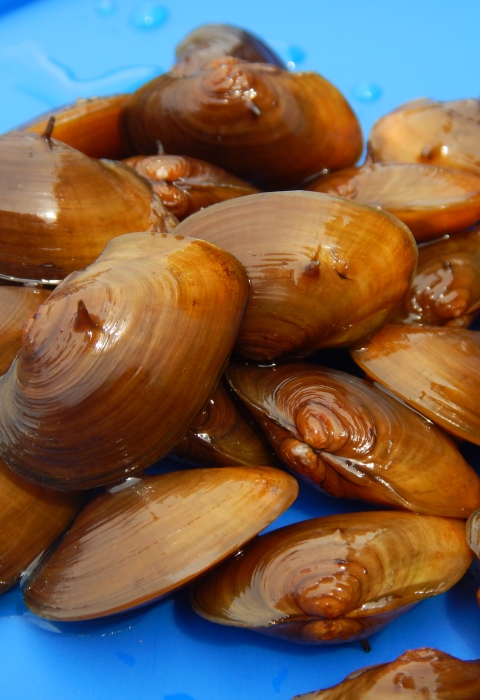 This freshwater mussel is found in the James River basin in Virginia and West Virginia and in the Upper Dan sub-basin of the Roanoke River basin in Virginia and North Carolina. The James spinymussel is a small freshwater mussel slightly less than three inches in length. Adults have a dark brown shell with prominent growth rings and occasionally, short spines on each valve. Young mussels have a shiny, yellow-gold and brown shell with or without one to three short spines. The foot and mantle tissue of adult mussels are typically orange.
