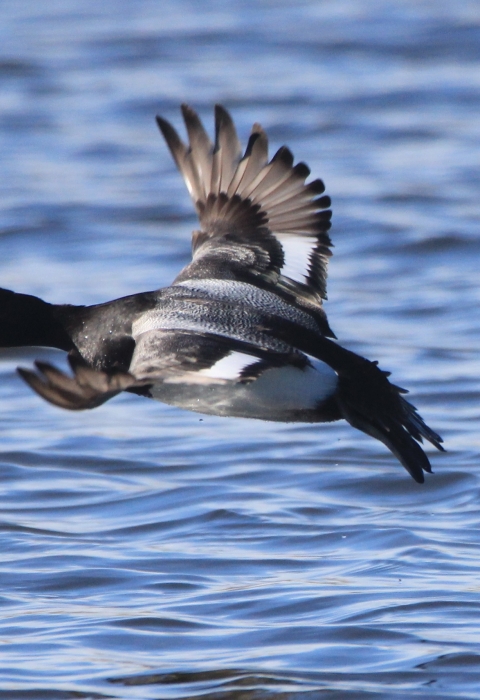 The lesser scaup is a medium-bodied diving duck, meaning they feed by diving under the surface of deep water to find their food. Males have a dark emerald to black head and a mostly gray to white body. Females are mostly brown on their body and have a dark brown head with a white patch at the base of the bill. Scaup have evolved a bill structure perfect for catching invertebrates swimming in the water column. Interestingly, lesser scaup have a significantly delayed spring migration compared to most other species, and they typically do not begin nesting until mid-summer. Lesser scaups are found in all four flyways, but the majority of birds migrate through the Central and Mississippi.