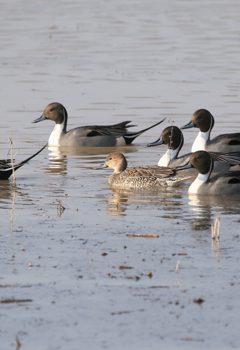 Often described as elegant or handsome, the northern pintail is known for their long slender neck and long central tail feathers. These ducks migrate earlier than many other species of dabbling ducks reaching the breeding grounds as soon as the ice melts.