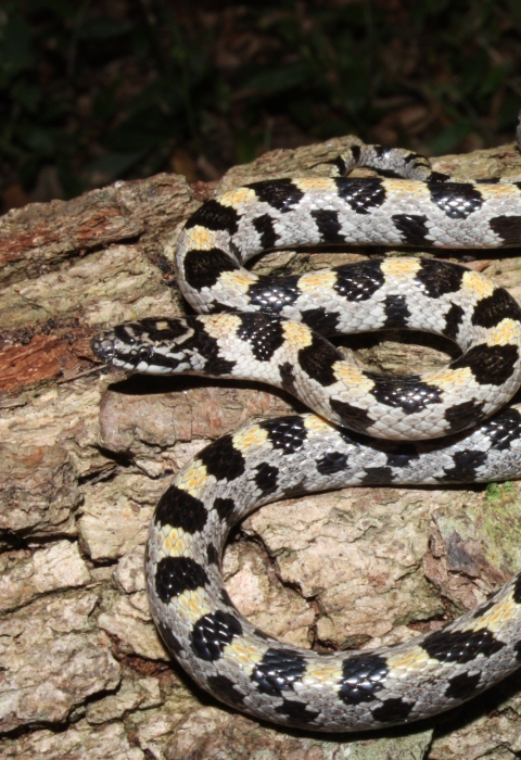 There are 21 recognized species of Lampropeltis. The yellow-bellied kingsnake (Lampropeltis calligaster) and the larger, more widely distributed common kingsnake (L. getula) are closely related to the short-tailed snake.
