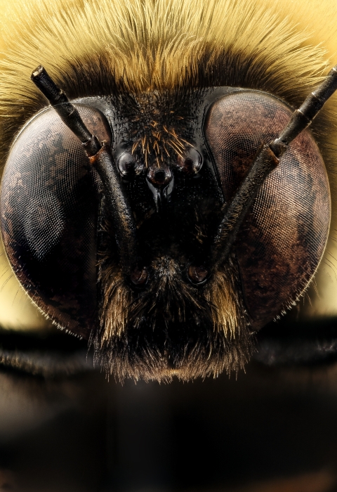This large, black and yellow bumble bee has short hair and a short head compared to other bumble bee species. Sometimes, the head and thorax between the wings can be extensively yellow. Queens can be an inch long. This social species has an annual lifecycle that starts in early spring when colonies are initiated by solitary queens that emerge from overwintering sites in March or April. This cycle progresses with the production of workers throughout the summer and ends with the production of males and new queens in late summer and early fall. Survival and successful recruitment require food (nectar and pollen) from floral resources from early spring through fall, nesting habitat in proximity to foraging resources and overwintering habitat for the next year’s queens.