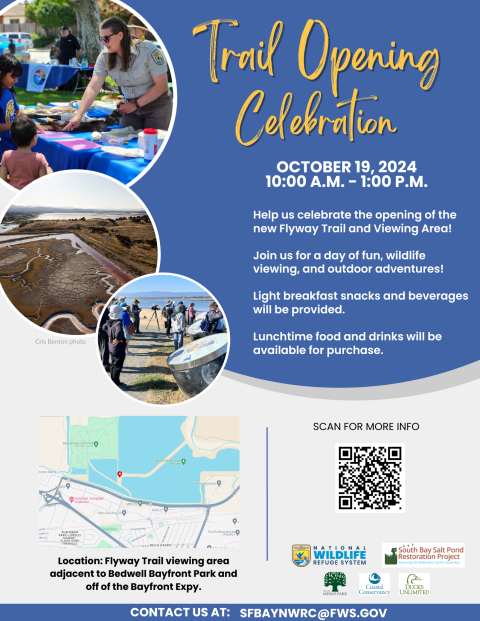 Come join us for an exciting Flyway Trail Opening Celebration at the Ravenswood portion of the Don Edwards San Francisco Bay National Wildlife Refuge. It's going to be a fun-filled day of exploring nature, meeting new friends, and enjoying delicious food.