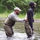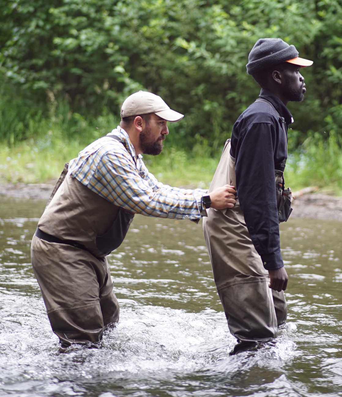 Kris and Reth demonstrate the double side-shuffle method as you can see from the side. Photo: USFWS/Katrina Liebich