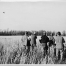 Original caption: Gunners shooting Pheasant on the wing for the National Retriever Club Field Trials held on the Crab Orchard National Wildlife Refuge. December 1947.
