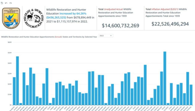 The Wildlife and Sport Fish Restoration Program (WSFR) has launched new data dashboards to give partners and the public access to hunting and fishing license data and apportionment figures, with decades of information.