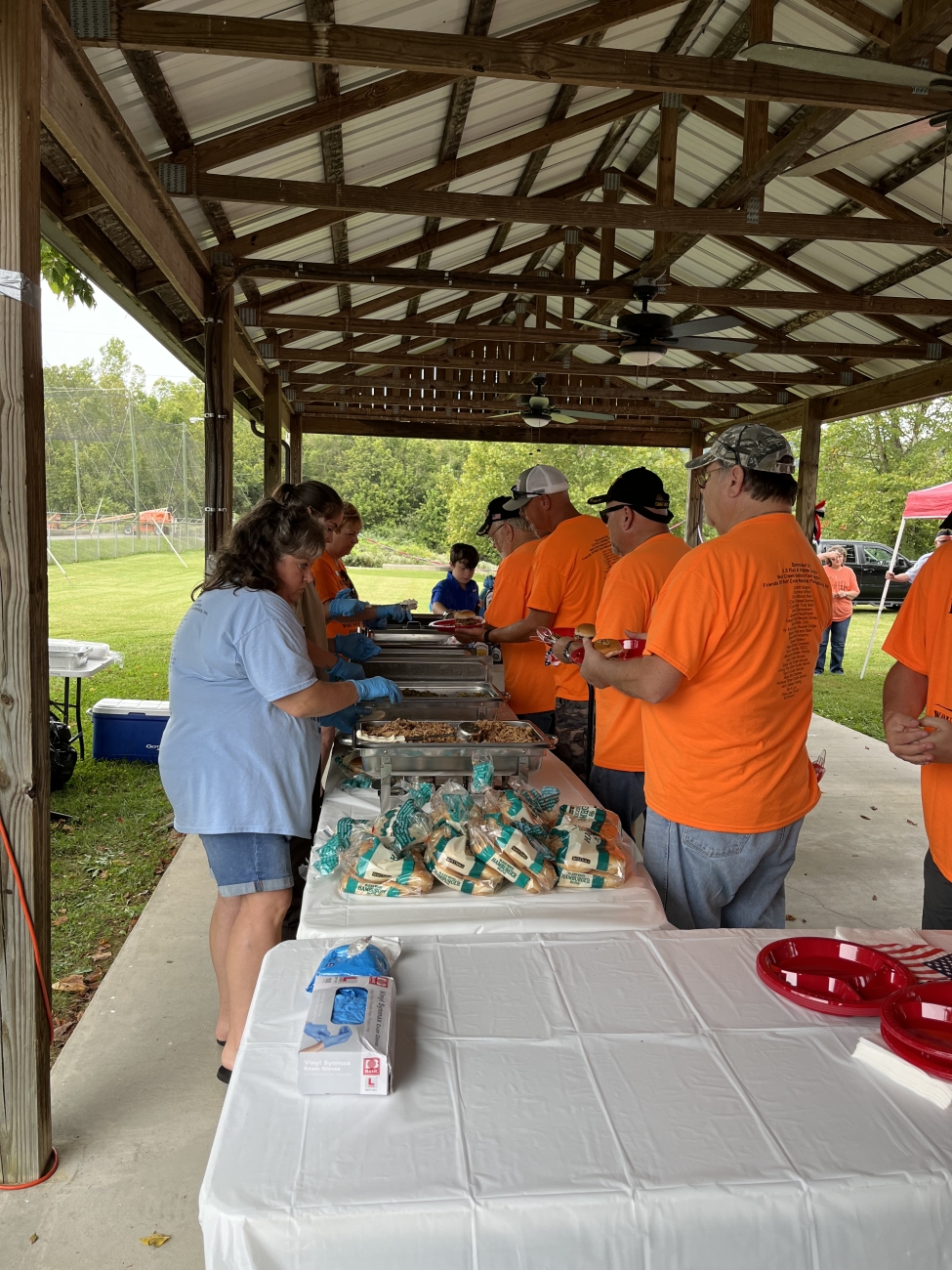 Participants of the 2023 Wounded Warrior Fishing Event being served lunch at Wolf Creek National Fish Hatchery.