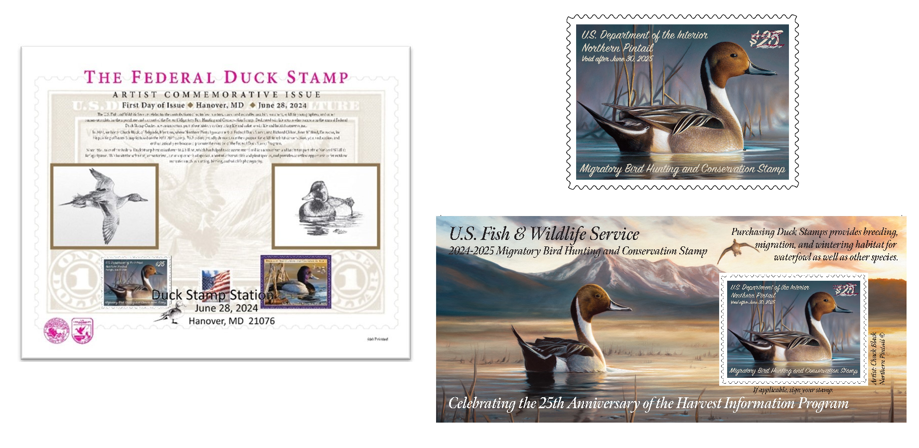 Artist Commemorative, pane of 1 federal duck stamp, and image of single stamp