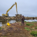 New Deputy Project Leader Jason Storlie looks on as work wraps up on the White Slough Tidal Wetlands Restoration Project. Credit: Jill Demers/Humboldt County Resource Conservation District.