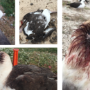 Laysan albatrosses with wounds from mice attacks.