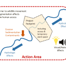 This diagram shows how an action area encompasses the project footprint and any area impacted by the effects of the project.