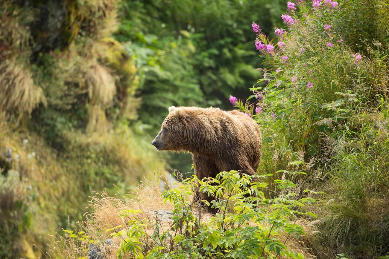 The Kodiak brown bear is classified as "Ursus arctos middendorffi" and is considered a distinct subspecies from mainland brown bears; they have been isolated on the archipelago since the last ice age, about 12,000 years ago. A rich variety of vegetation, salmon, and berries provide ideal habitat for bears, and their population flourishes - estimated at about 3,000 bears within the boundaries of the Kodiak Refuge.