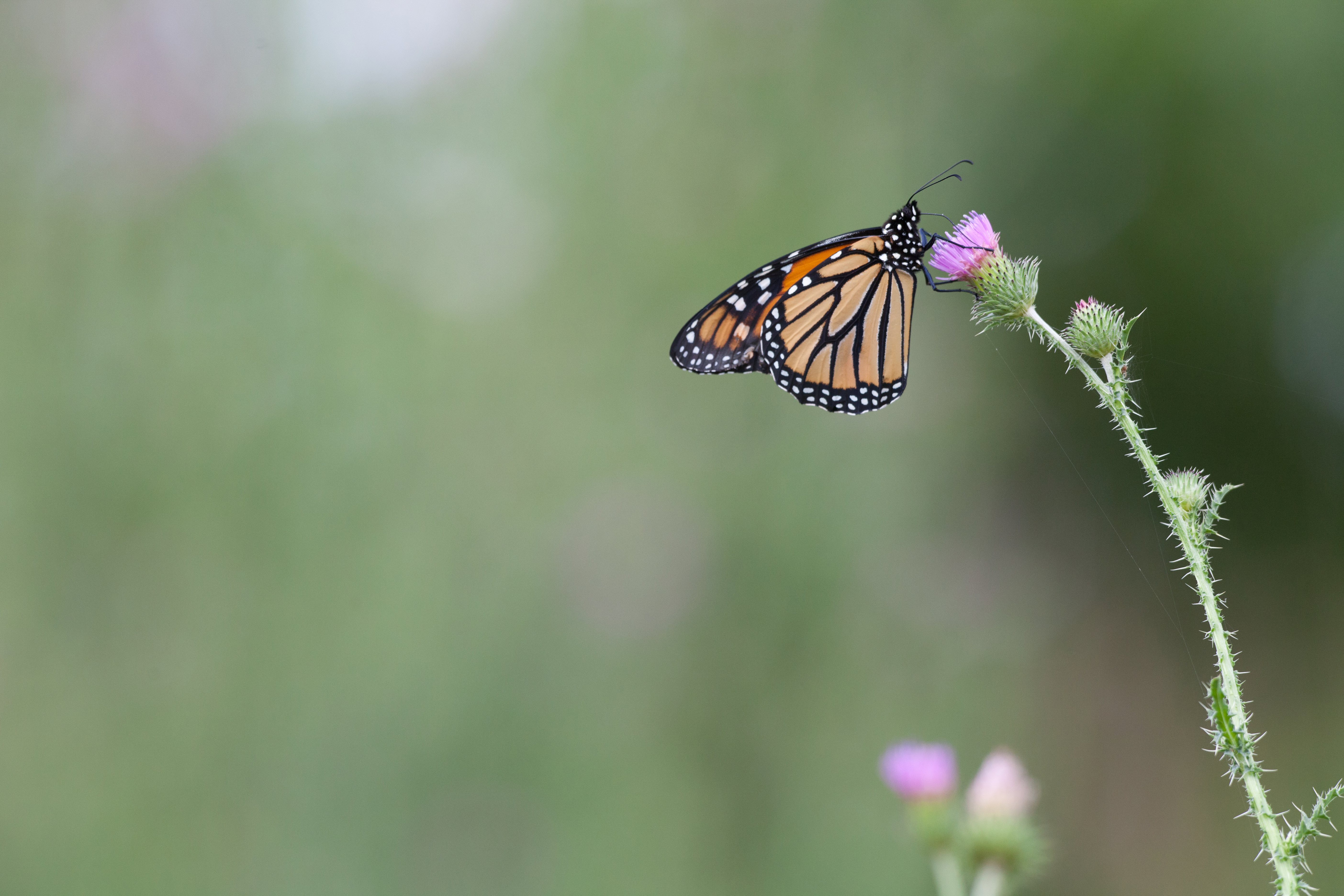 Adult monarch butterfly on a thistle
