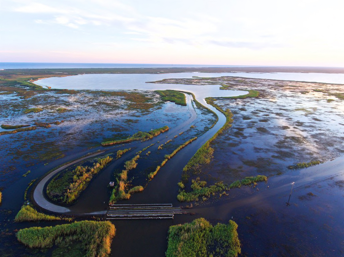 Hurricane Harvey's extensive flooding on Mcfadden National Wildlife Refuge as seen from the air.