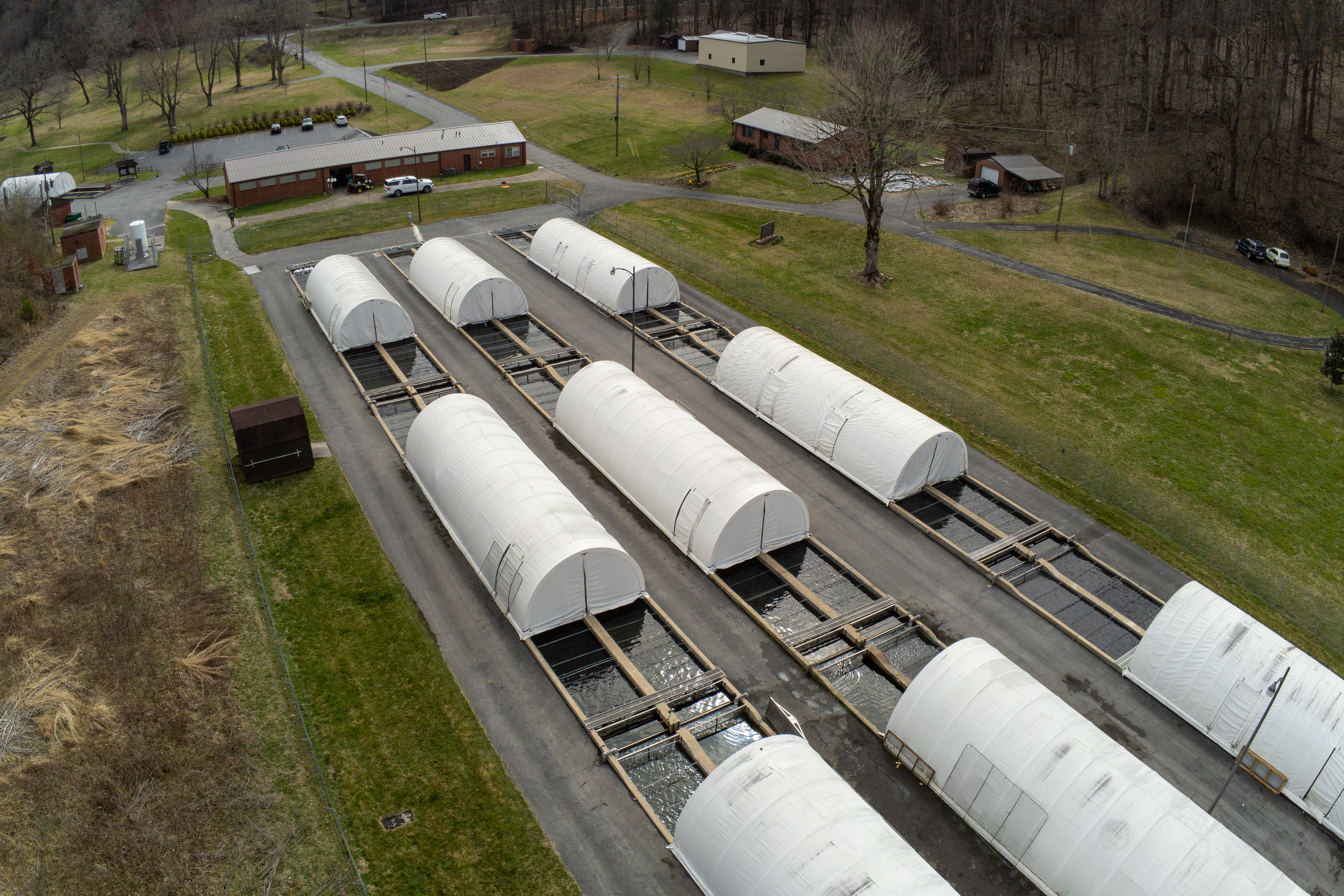 Aerial shot taken by drone of Erwin National Fish Hatchery