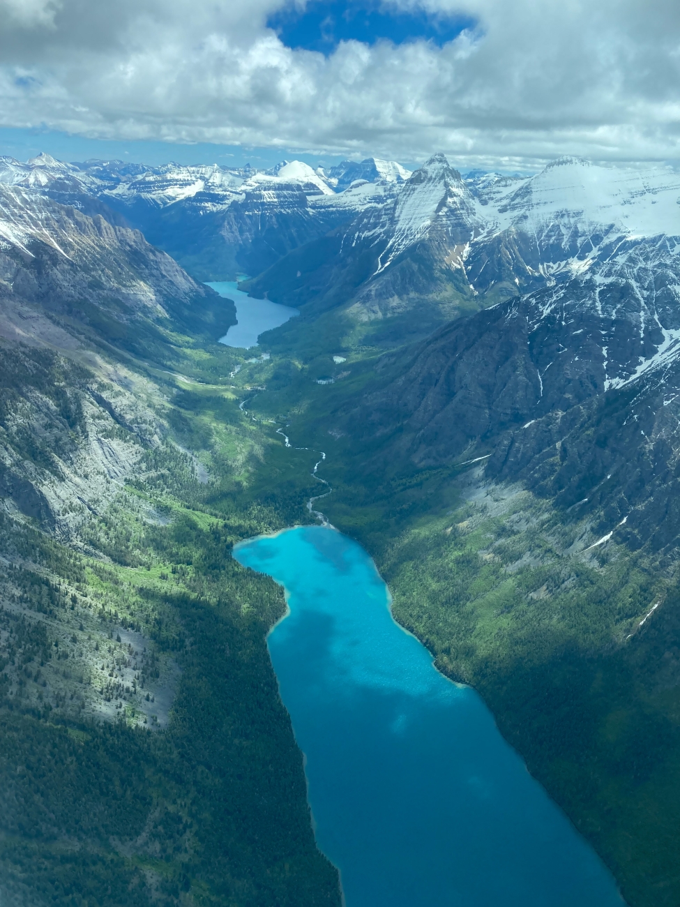 Aerial view of Glacier National Park taken during the 2024 Waterfowl Breeding Population and Habitat Survey.