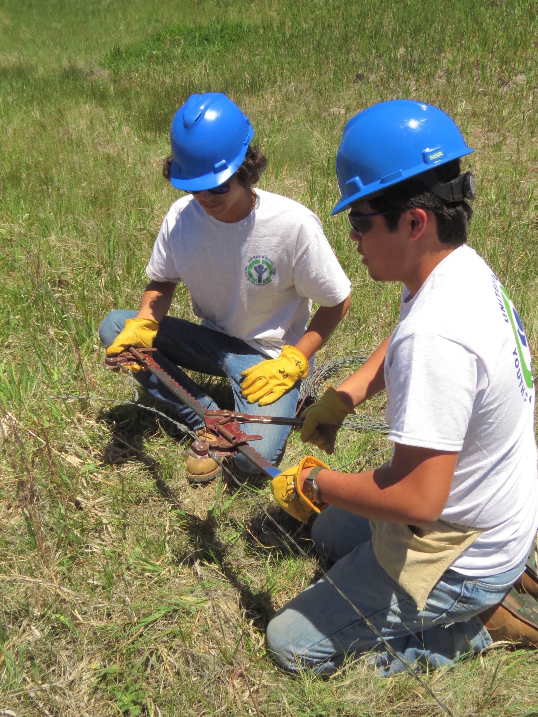 YCC Crew members working on barbed wire fence