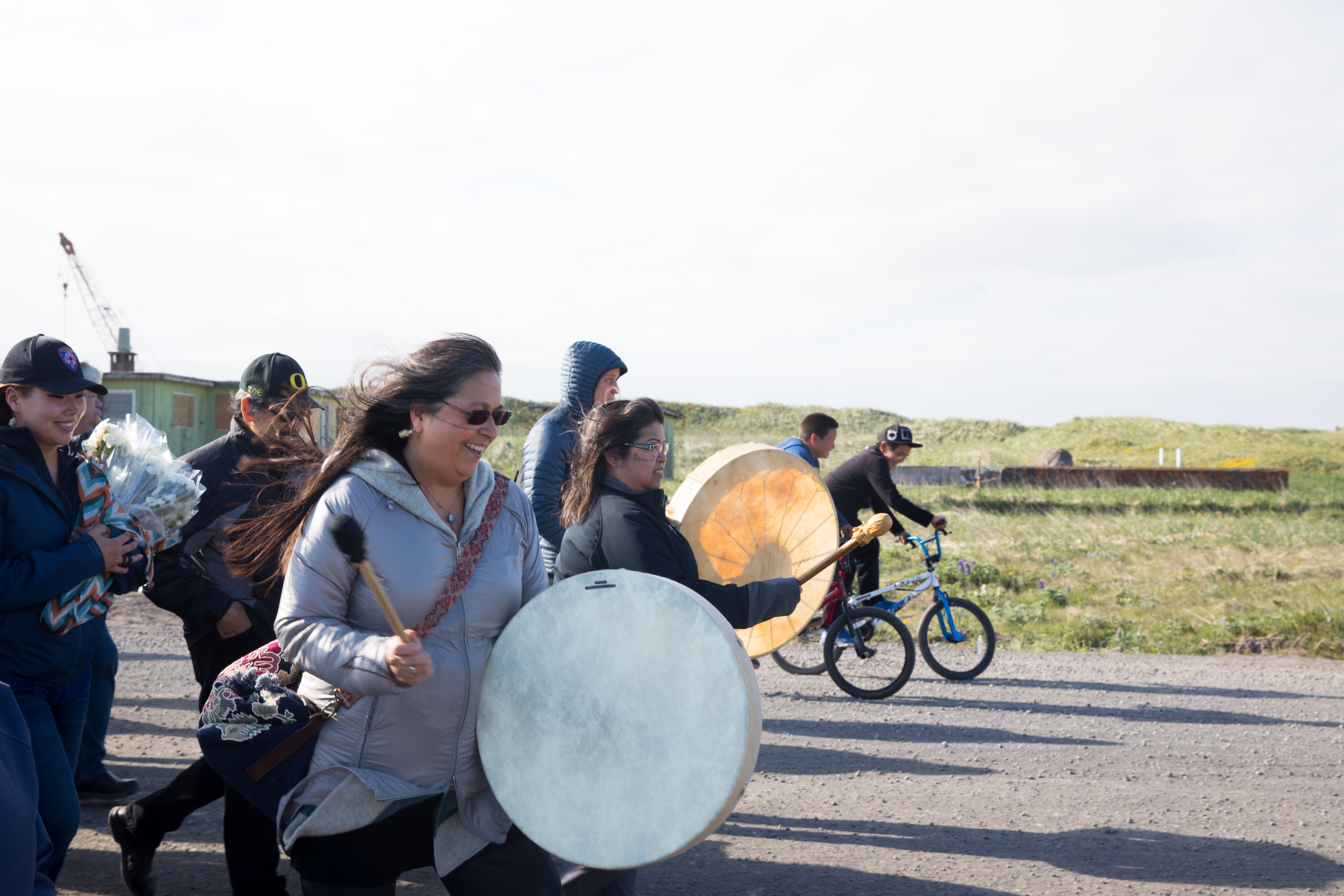 Alaska Native people take part in a procession.
