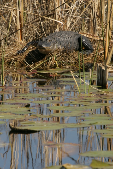Large Alligator enjoying the warm sun, contemplating an afternoon dip in the pond.