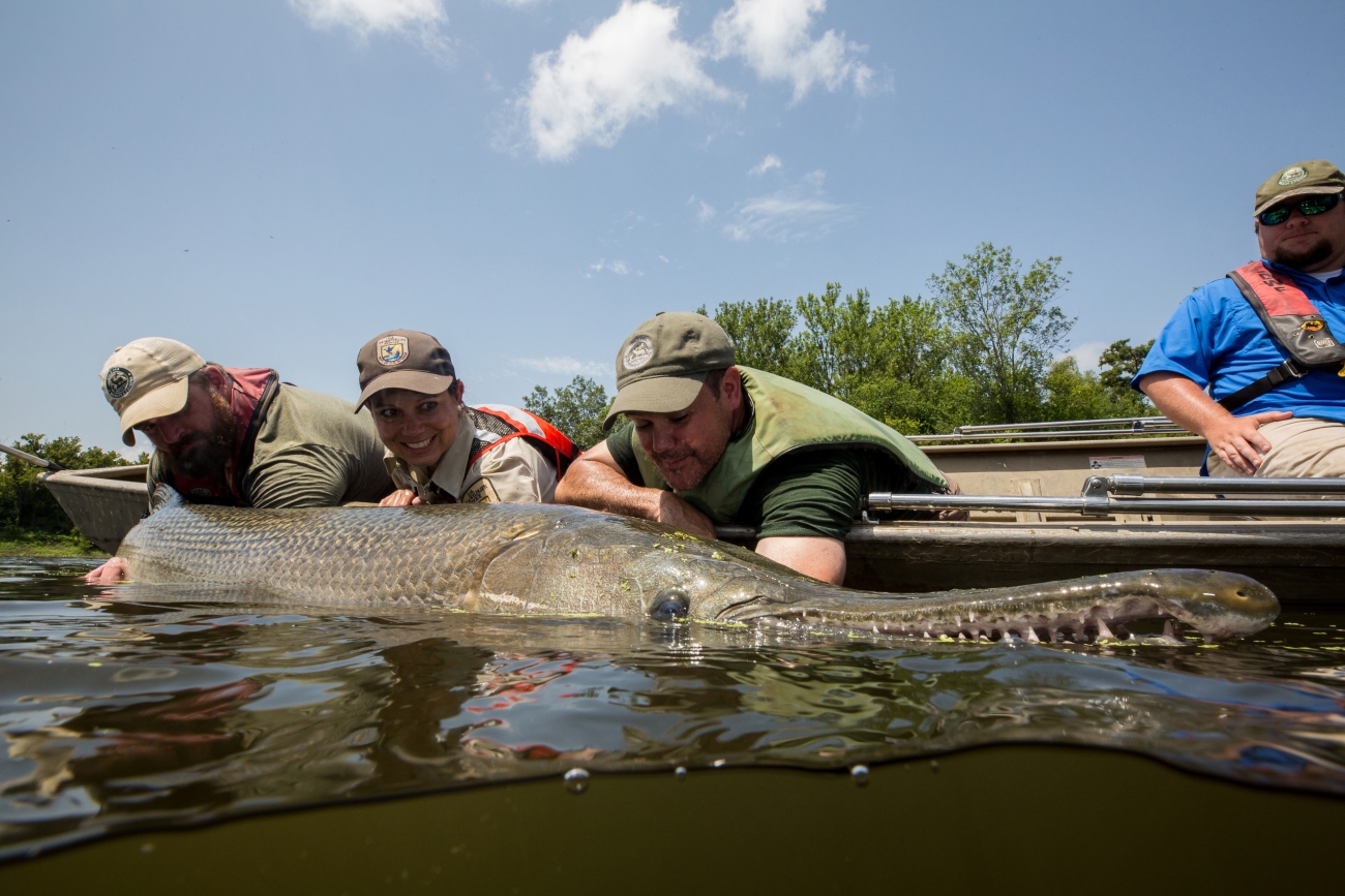 Biologists capture gar with gill nets in Mississippi