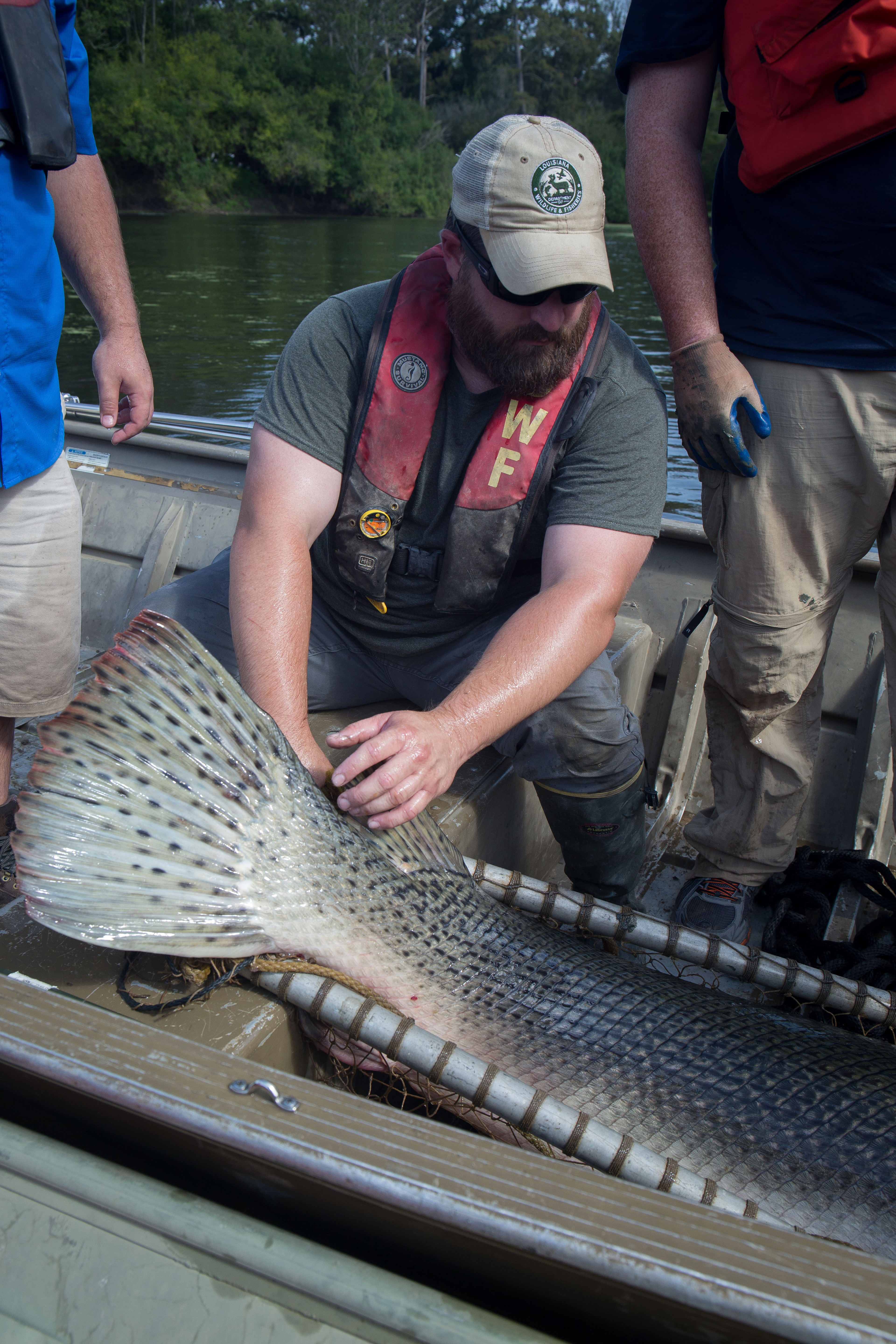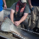 Biologists capture gar with gill nets in Mississippi