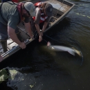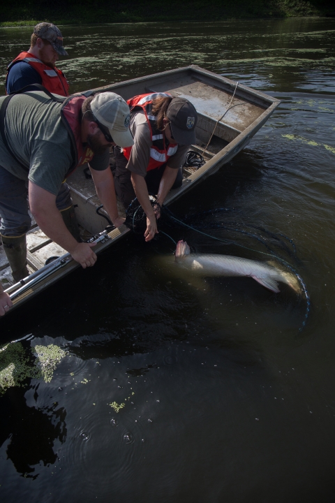 Biologists capture gar with gill nets in Mississippi