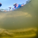 Biologists capture an alligator gar with gill nets in Mississippi. Credit: Ryan-Hagerty/USFWS