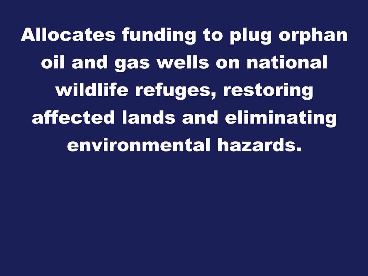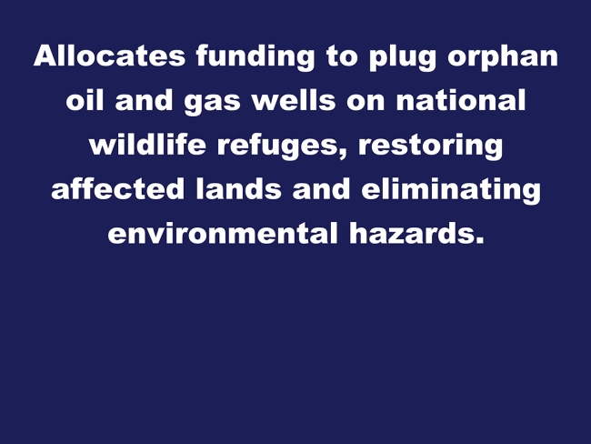 Allocates funding to plug orphan oil and gas wells on national wildlife refuges, restoring affected lands and eliminating environmental hazards.