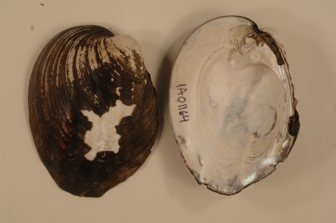 NCTC Freshwater Mussels Teaching Collection: Order: Unionoida Family: Unionidae Genus (ITIS): Amblema Species: plicata Williams et al.: Use to be: Location Name: Mississippi River, Bettendorf, Scott co., IA Location State: IA
