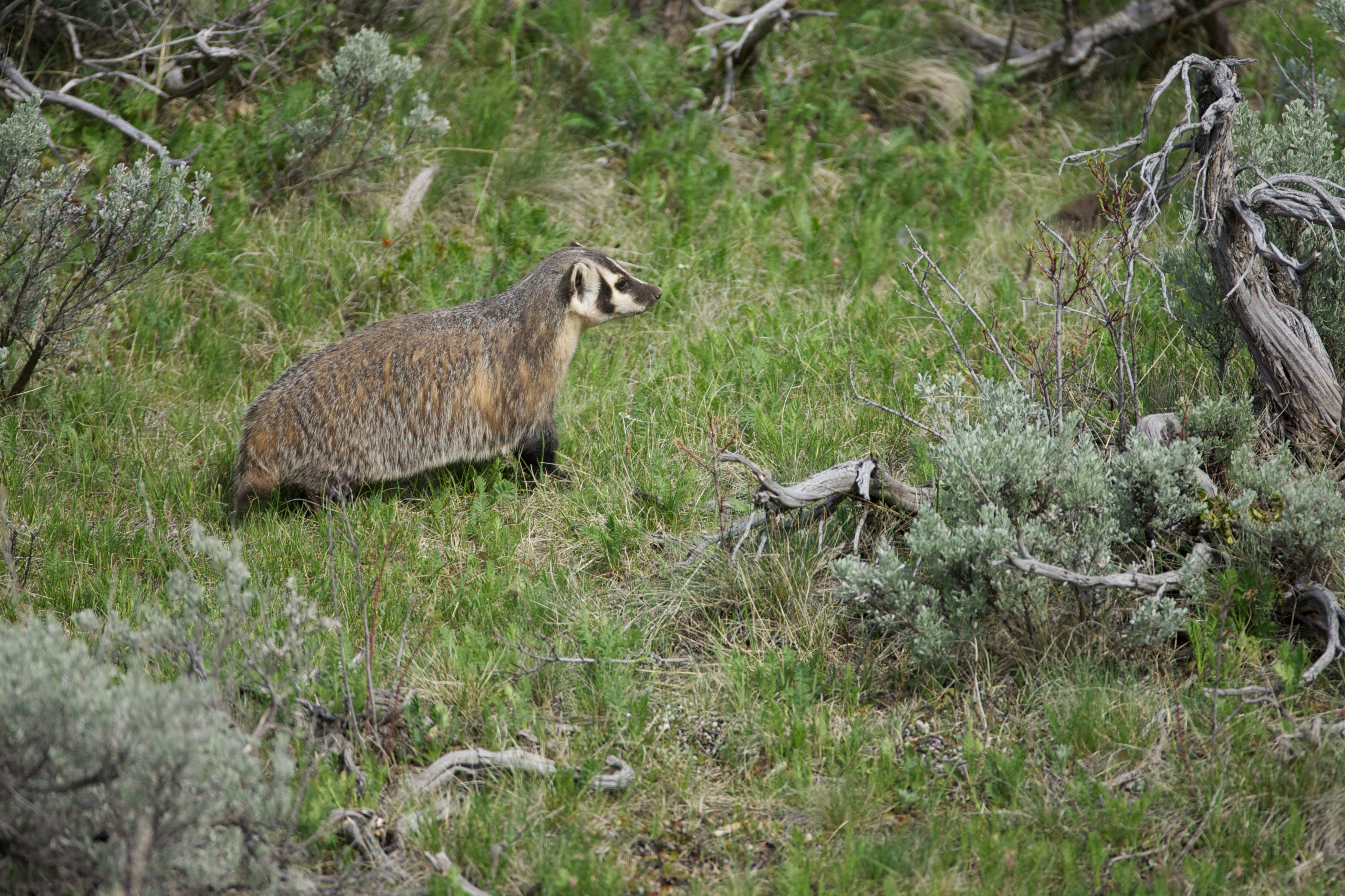 The American badger is at home in grasslands and woodlands providing there is enough of its favored prey. Its mostly nocturnal habits seldom bring it into contact with people, but signs a badger is in the area such as tracks and holes can be found. Although they normally attack at night when their victims are asleep, badgers are fast diggers and can pursue their quarry (mice, chipmunks, squirrels, rabbits, etc.) into holes.
