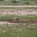 American badger dozing on mound of dirt at Maxwell National Wildlife Refuge, NM.