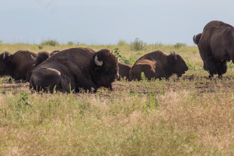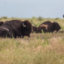 A herd of American bison in a field at Rocky Mountain Arsenal NWR.