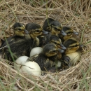 Ducklings from American black ducks huddled together in a nest.