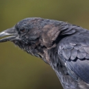 American Crows are familiar over much of the continent: large, intelligent, all-black birds with hoarse, cawing voices. They are common sights in treetops, fields, and roadsides, and in habitats ranging from open woods and empty beaches to town centers.