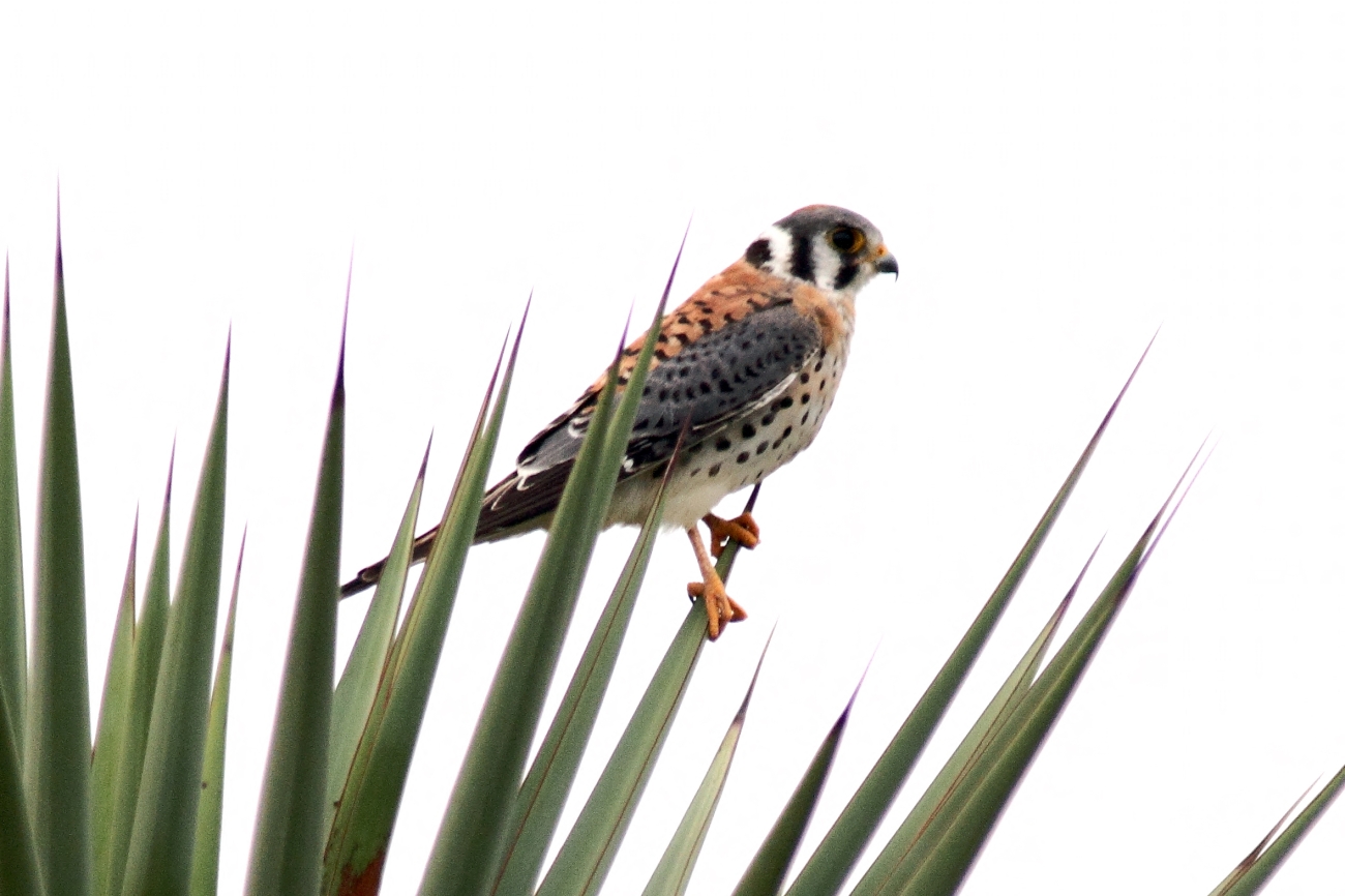 American kestrel perched on a plant