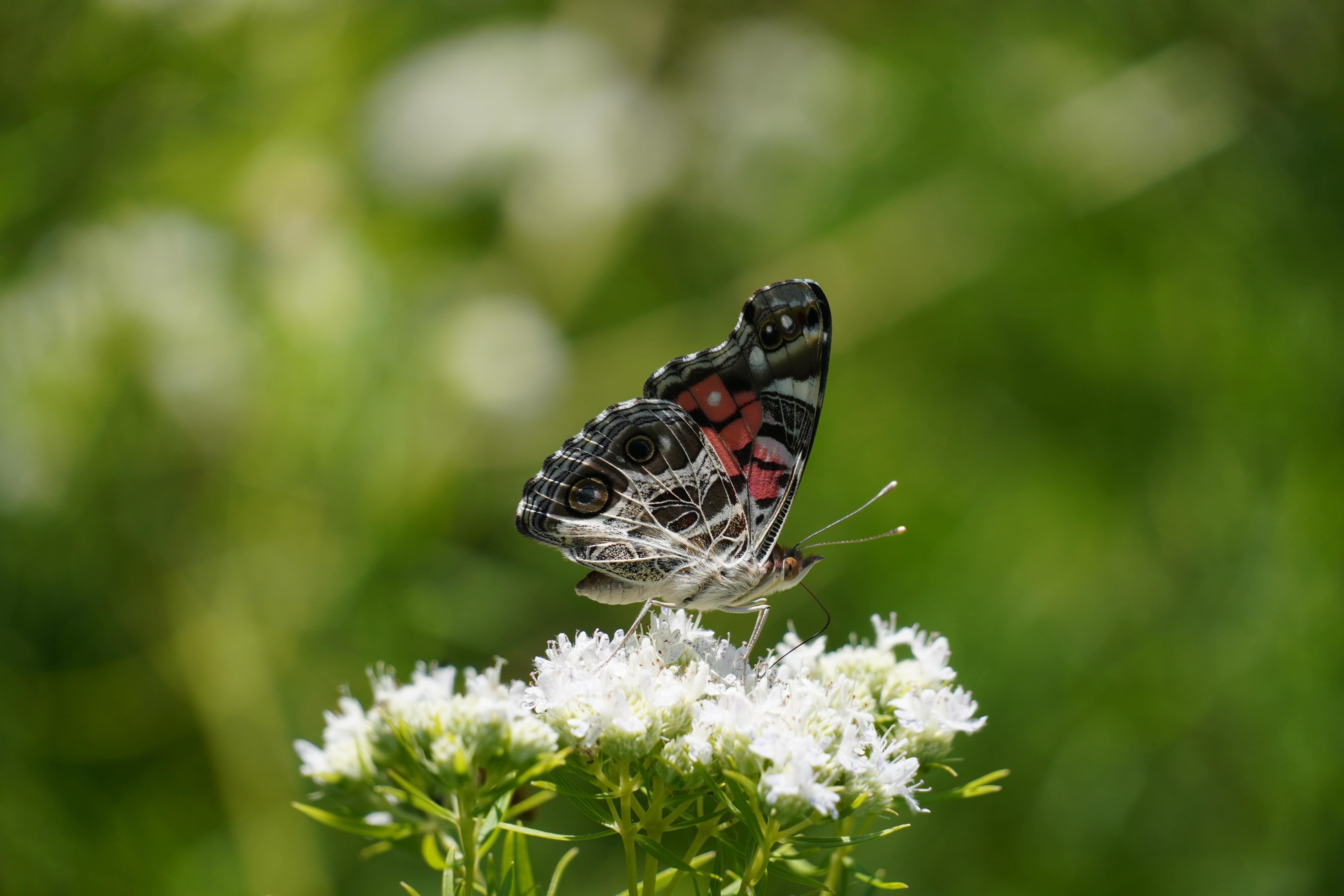 An American lady sips nectar from narrowleaf mountain mint in the butterfly garden at Eastern Shore of Virginia National Wildlife Refuge.